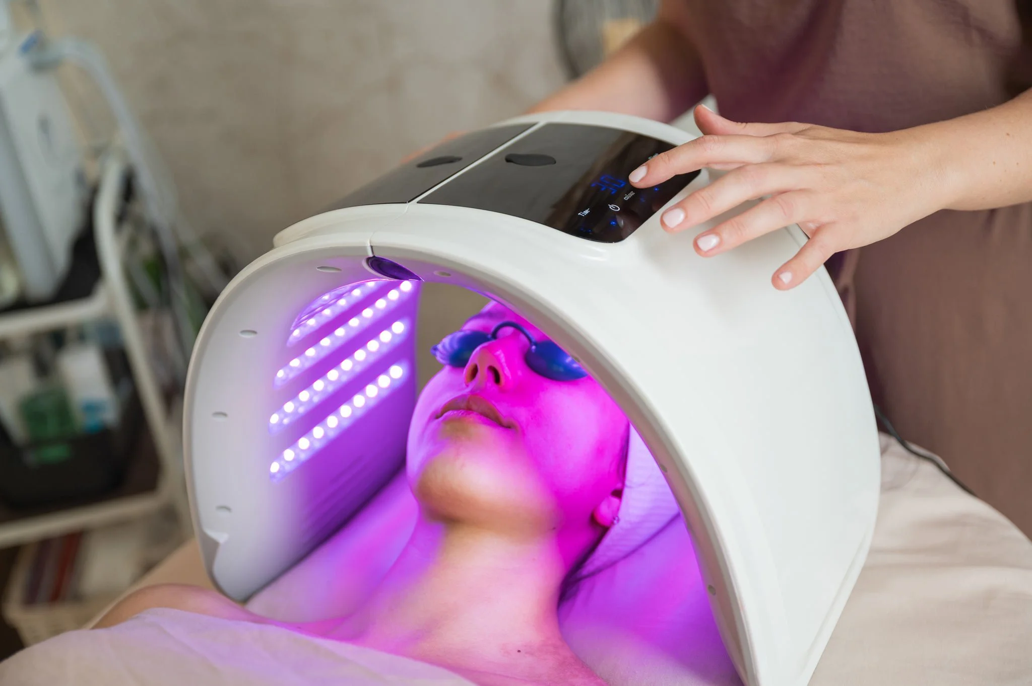 Advanced light therapy treatments designed to support skin health, recovery, and rejuvenation in a calm, relaxing environment.